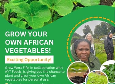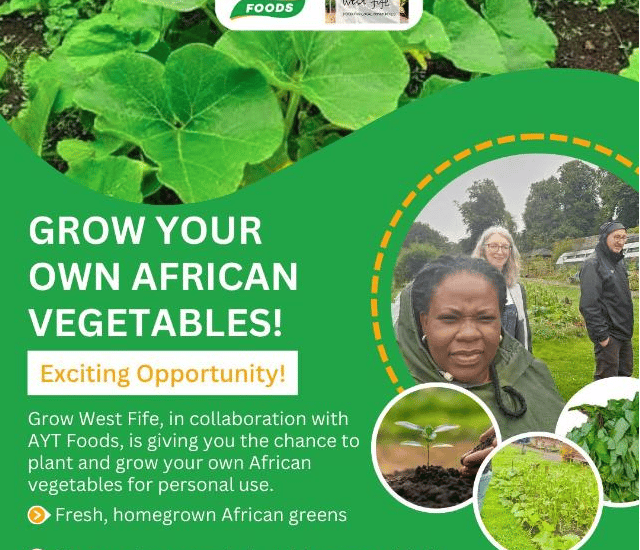 Delivered in partnership with Grow West Fife, this initiative supports traditional vegetable cultivation, enabling community members to grow culturally familiar produce. The programme promotes food sustainability, wellbeing, and cultural connection while encouraging hands-on learning and environmental awareness within West Fife.